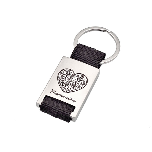 Schlüsselanhänger mit QR-Code - Metall und schwarzem Textilband