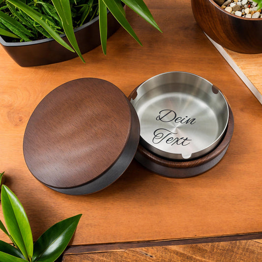 Aschenbecher mit Edelstahl-Einsatz und individueller Lasergravur