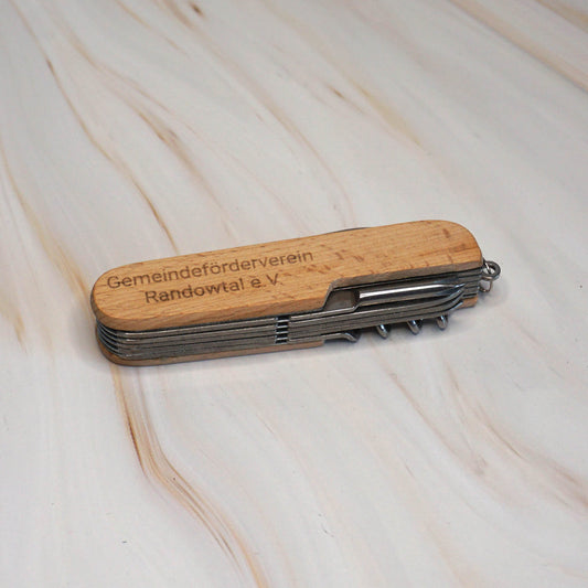 11 in 1 Taschenmesser mit individueller Gravur - Campingmesser mit Holzgriff