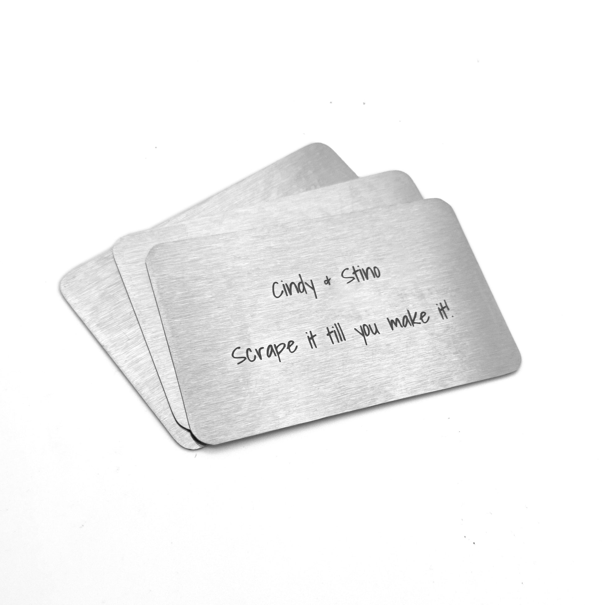 Diese elegante Edelstahl-Karte eignet sich perfekt als Visitenkarte, VIP-Pass oder als personalisiertes Geschenk. Dank ihrer dauerhaften Lasergravur behalten Ihre Motive, Namen oder Logos stets eine klare, hochwertige Optik. Zudem können Sie wichtige Informationen wie Notfallkontakte, Bankdaten oder sonstige Daten dauerhaft und sicher aufbringen. Gefertigt aus gebürstetem Edelstahl überzeugt die Karte durch ihr edles Finish und ist mit einer Dicke von nur 0,5 mm angenehm leicht. Das Format (8,5 × 5,55 cm) entspricht einer gängigen Kartengröße und passt daher problemlos in Geldbörsen, Etuis oder Kartenfächer.