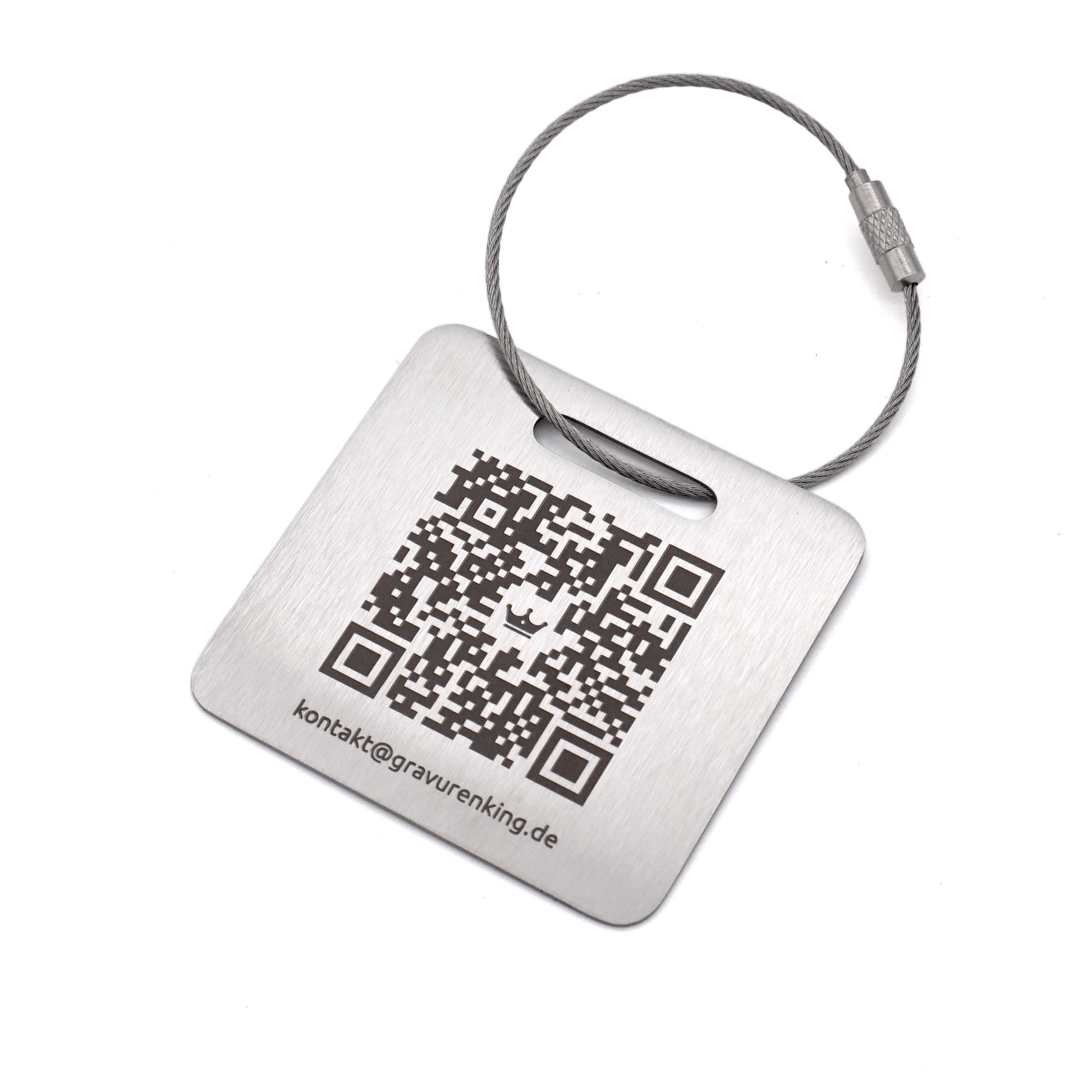 Dieser elegante Kofferanhänger aus hochwertigem, rostfreiem Edelstahl ist speziell für die Gravur von QR-Codes konzipiert. Mit seinem modernen, quadratischen Format (55 × 55 mm) bietet er ausreichend Platz für klare, präzise Gravuren – ideal, um Kontaktdaten, Webseiten oder Notfallinformationen per Scan abrufbar zu machen.