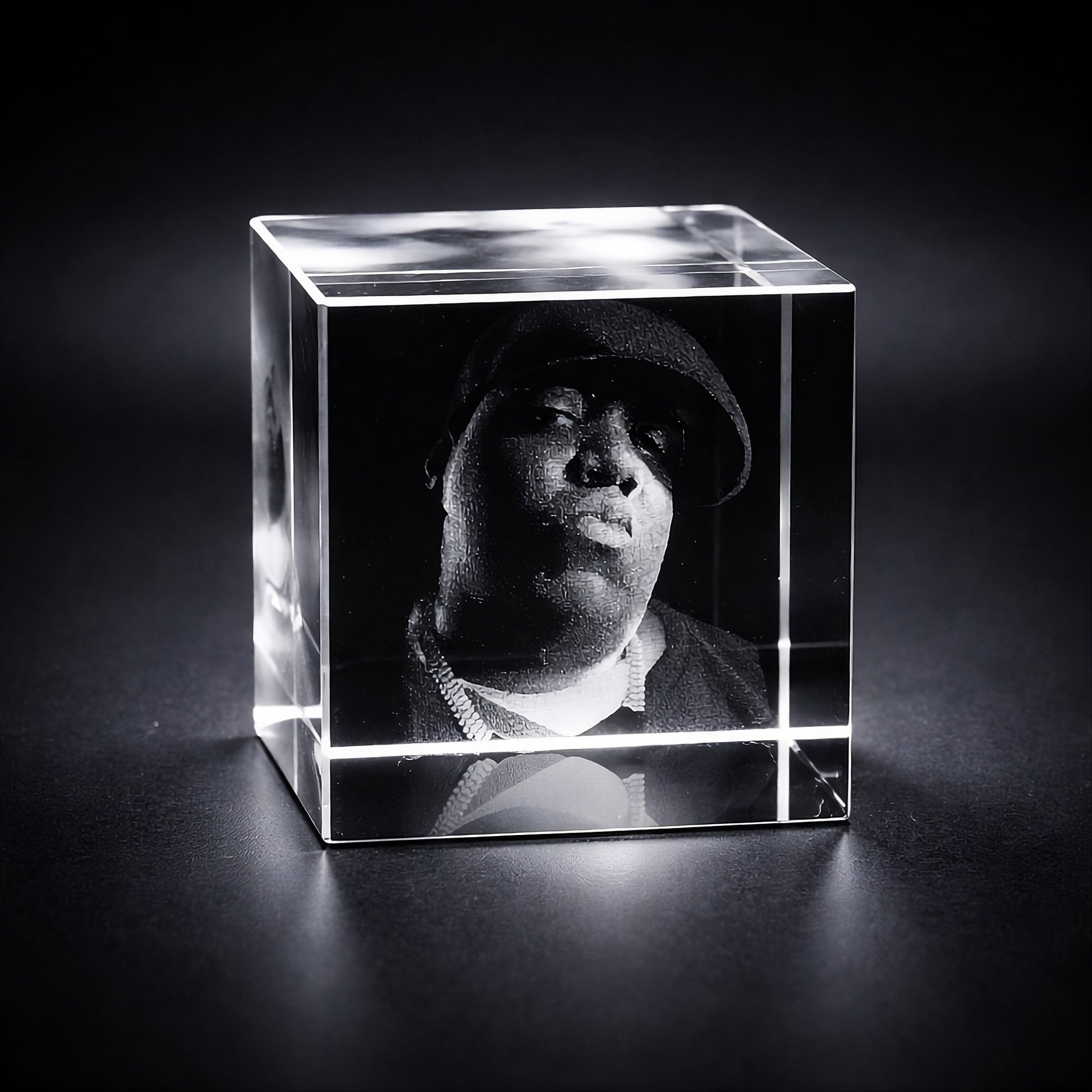 Machen Sie Ihr Foto unvergänglich. Wir gravieren Ihr Wunschmotiv direkt in das Innere eines massiven Kristallglas-Würfels. Die Oberfläche bleibt dabei komplett glatt – das Bild scheint im Glas zu schweben.